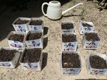 この間,「ツルレイシ」と「ヘチマ」の種を植えました。