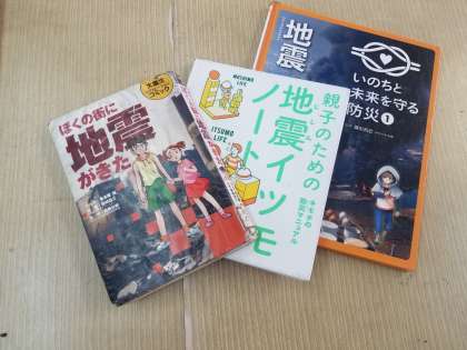 「地震」という一つのテーマでもふくすうのたなを見ると,気になる本がたくさんありますね。