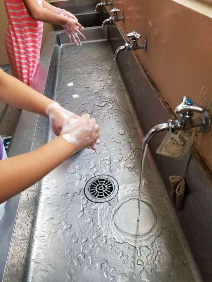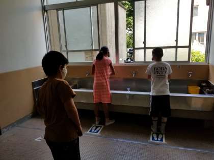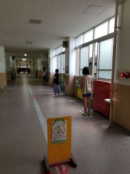 (ソーシャルディスタンスをとりながら順番に測定しました。)