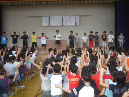 夏休み明けの学校スタートの日(8月26日)に「早寝・早起き・朝ご飯」の取り組みを保健委員会の児童が紹介してくれて,みんなでいっしょに取り組んでいこうと,歌とダンスをしました。