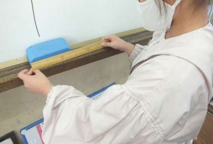 算数では,竹尺で正しく長さを測ったり直線をかいたりできるように頑張って学習しています。