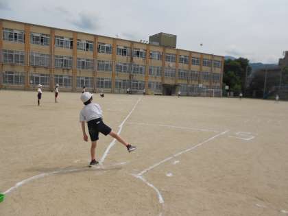 京都市の体力テストの一環として,体育科の学習で「ソフトボール投げ」をしました。