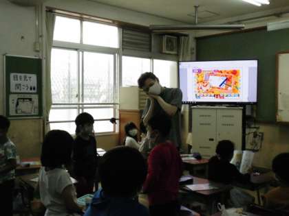 また,じゃんけんをして勝った回数を尋ね,答える練習をしました。外国語を使ってじゃんけんをして,楽しいようすでした。