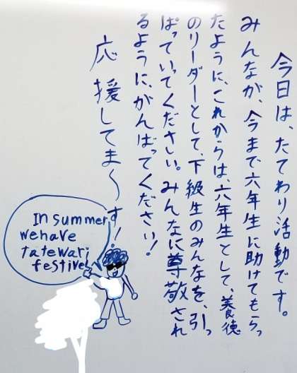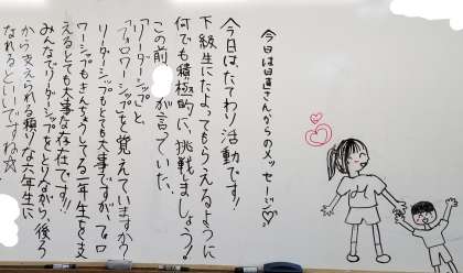 明日の日直さんが黒板にポカポカメッセージを書いてくれました。