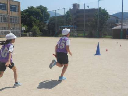練習を重ね,バトンパスがどんどん上手になっています。前回の自分たちの記録を更新するチームが増えています。