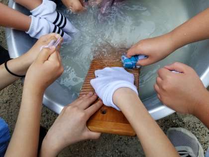 みんなで靴下の手洗いに挑戦しました。