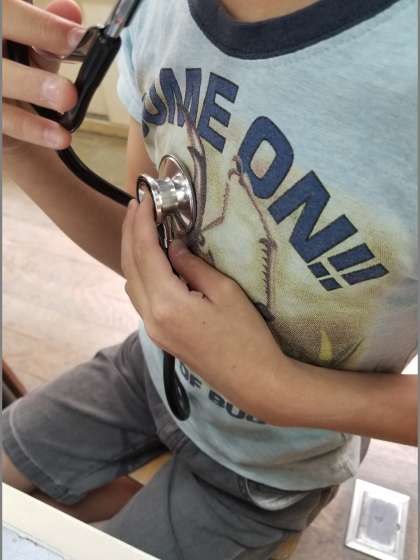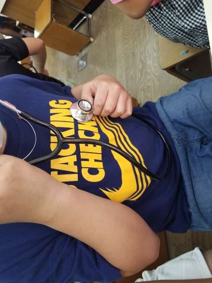 理科の時間に聴診器を使って,自分の心臓の音を聞きました。