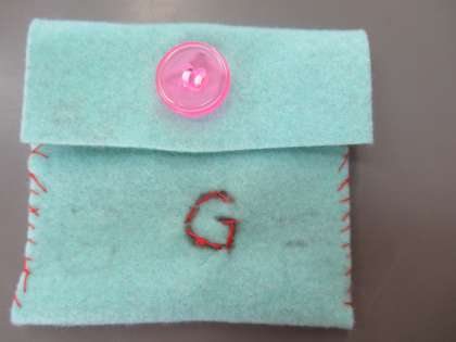 フェルトを使って,小さな小物入れを作りました!