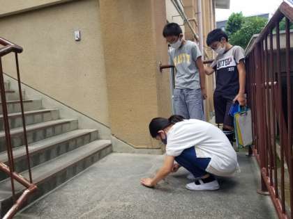 「階段に矢印を作って右側通行を意識してもらいたい。」