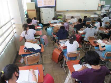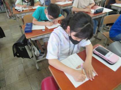 鉛筆でお手本を見ながら,清書用の紙に書き写しました。