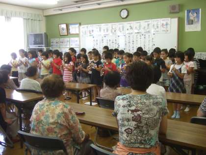 9月13日(火)にふれあいサロンで養徳「健康すこやか学級」がありました。地域の方々と3年生の交流もありました。3年生は歌とリコーダを心を込めて演奏しました。3年生は少し照れながらもとってもいい笑顔でした。