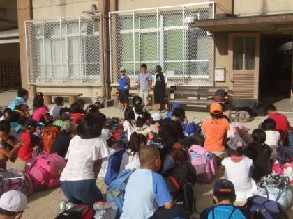 4年生がみさきの家に全員出発しました。子ども達は,これからの3日間の活動にわくわくドキドキしている様子でした。