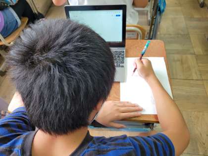 GIGA端末で猫の写真を見比べたり,自分のイメージにあうネコの写真を探したりしてネコを描く練習をしました。