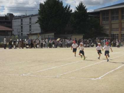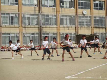 11時から3・4年生の部を行いました。3年生は「50メートル走」と「リズム体操」,4年生は「ハードル走」と「鳴子おどり」を力いっぱいがんばりました。