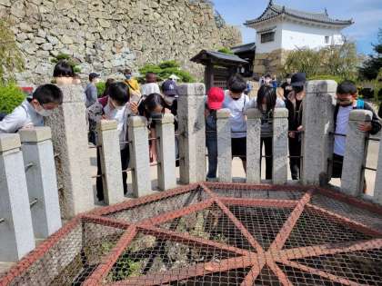 お菊井戸を覗き込んでいます。