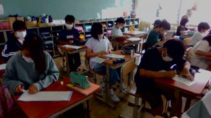 国語科の「日常を十七音で」の学習で,俳句の構成や書き表し方について学習し,生活の中での気づきや驚き,季節感を感じた場面を俳句に書き表しました。