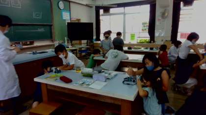 理科では初めてネイチャースコープを使ってメダカの稚魚の観察をしました。