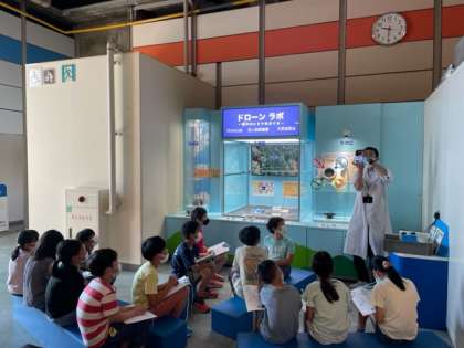 展示学習とは別に,科学センターの職員さんが解説をしてくださるプログラム学習がありました。ドローンの仕組みについて学んだり,大きな地球儀を使って学んだり,元素について学んだりと,楽しそうなものばかりでした。