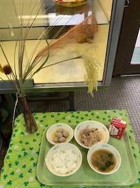 給食ではこの「いも名月」にちなんで、「里いもの煮つけ」を行事献立に取り入れ、一足早く給食で実施しました。