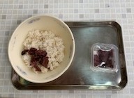 しば漬けは、京都の三大漬物(しば漬け・すぐき・千枚漬け)の一つです。1人一個あてのカップ入りの個包装になっています。給食のしば漬けは、京都産のなすと、左京区の大原で作られた赤紫蘇、塩のみを使い、昔ながらの方法で乳酸発酵させて作られています。子どもたちに「しば漬け」が京都の大原で生まれた漬け物であることや、京都の食文化のひとつであるということを伝えていきたいと思います。「乳酸発酵」した独特な酸味がごはんと一緒に食べることでさらにおいしさを味わうことができます!