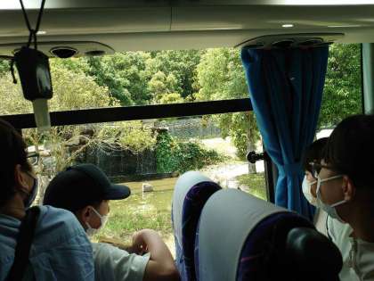サファリパークです。野生動物の姿に思わず身を乗り出して大喜びです。