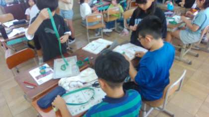 さらに輪の数や大きさなどを変えるとどのようになるのかも実験し、様々な形の「ふしぎの輪」を作って気がついたことを交流しました。