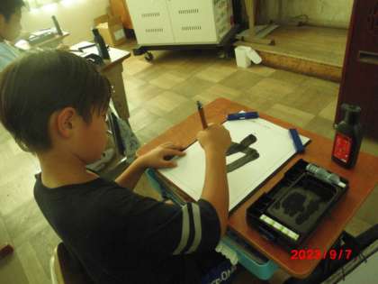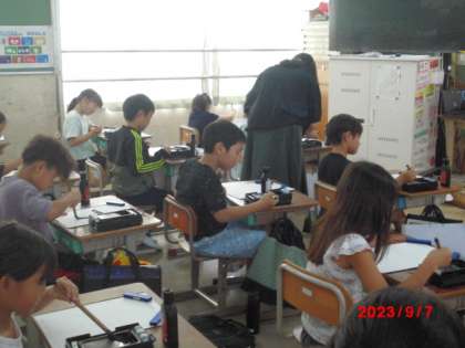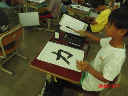 2学期が始まって、初めての書写の学習でした。「力」をはらいに気をつけて練習しました。書く時は、「正しい姿勢・筆の持ち方」に気をつけて書きました。
