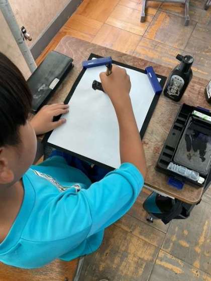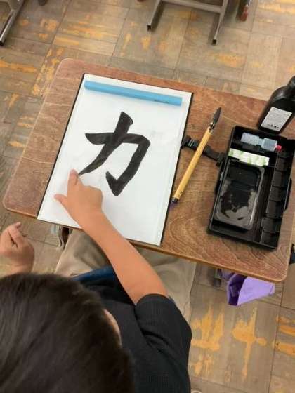 今日は、2学期最初の書写の学習がありました。「おれ」と「はね」を意識して「力」を書きました。力加減や毛筆の向きに気を付けて書くことができました。