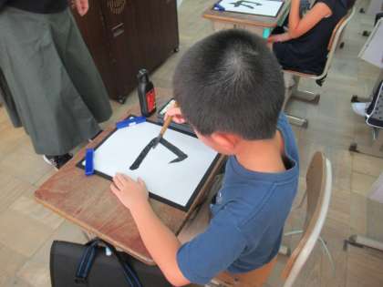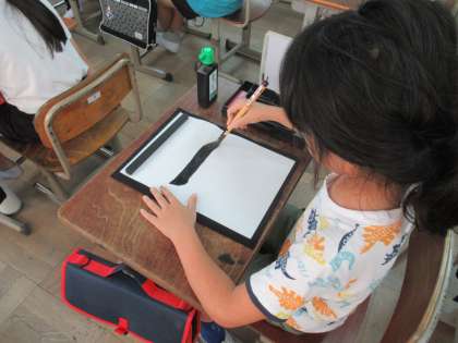 半紙に「おれ」、「はね」、「はらい」に気をつけて