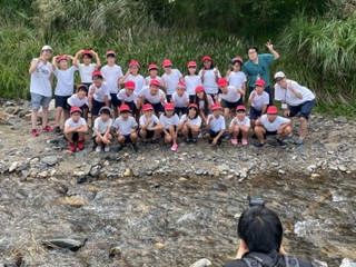 川活動をする親水広場でクラス写真を撮りました。これからの川活動のワクワク感が伝わる笑顔でした。