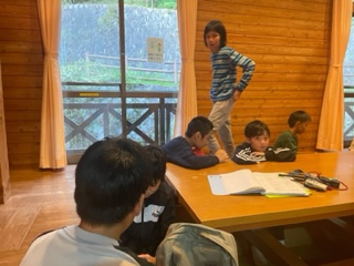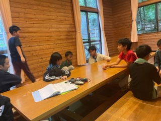 お風呂を済ませ、夕食まで少し時間があります。その間は宿泊棟のミーティングルームで話したり遊んだりしています。