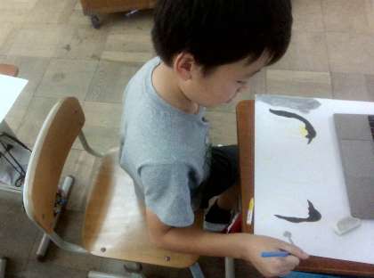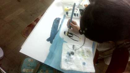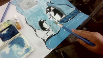 こちらは、南極に住むペンギンを描いている様子です。