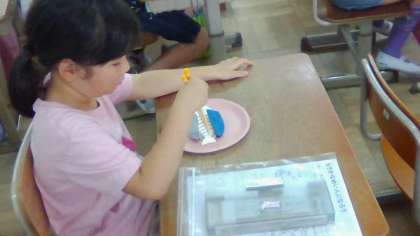 お魚の模型と本当のお箸を使って、教えてもらった食べ方の練習をしました。
