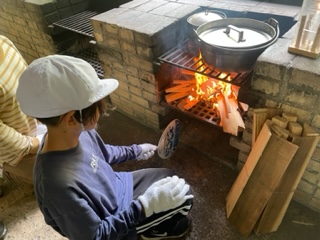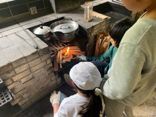 火おこしの火がかまどに入りました!