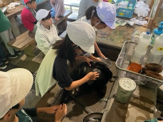 すすで真っ黒けになった鍋を磨いています。目指せ!ピッカピカ!!!!