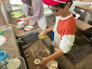ごちそうさまの後はみんなで掃除です。合言葉の答えはこの後すぐ。