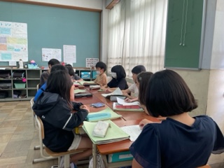 花背山の家宿泊学習を終え、全体で振り返りをしました。花背山の家へ行くまで、そして行ってからのことを振り返り、これからに活かすための話し合いを自分たちで進めることができました。