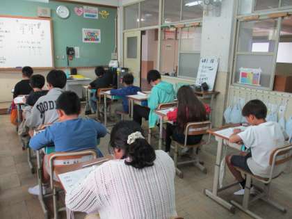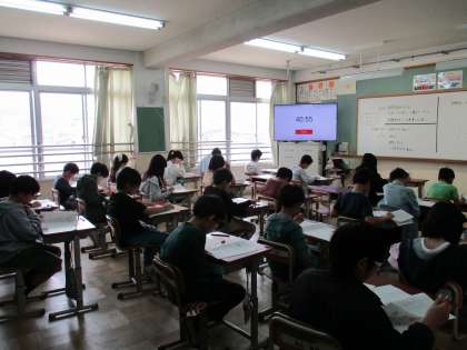 全国学力学習状況調査を実施しました。1組も2組も落ち着いて、一生懸命取り組んでいました。2時間目は国語、3時間目は算数の問題に取り組んでいます。
