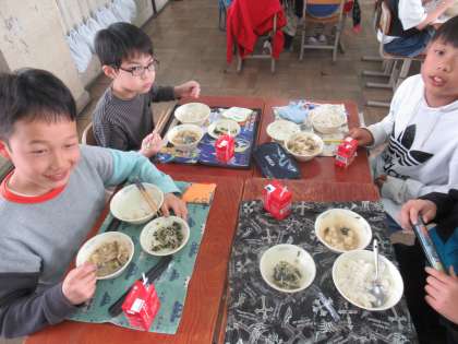 5年生 おいしく、楽しく給食食べてます!