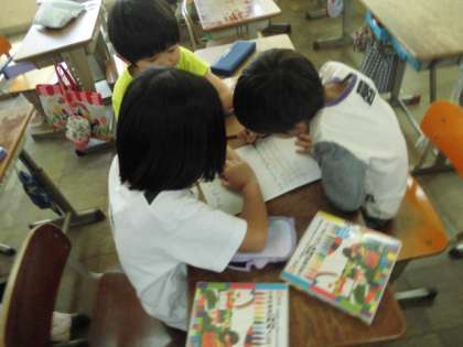 2年生の生活科の学習で、1年生を学校案内する準備をしています。グループで、それぞれの教室の案内を作っています。1年生と学校案内をすることが楽しみです!