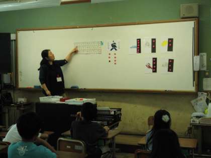 2年生では、ベーシックの時間に「ひらがなの読み書き学習」を通級の先生と一緒にしました。声に出したり、手をたたいたりして、楽しくひらがなの読み書きの学習をしました。
