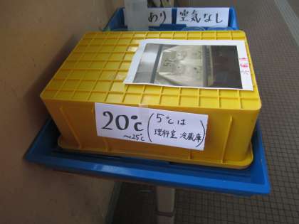 今回は、温度や空気は必要なのかを実験しています。