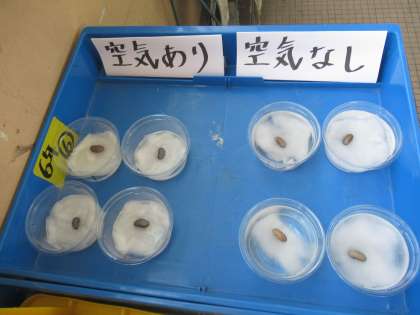 発芽の条件について実験をしています。