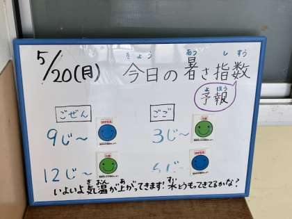 また、職員室前にはその日の予報を掲示し、子どもたち自身も自分の健康に気をつけられるよう取り組んでいます。
