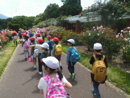 京都府立植物園に遠足に行きました。たくさんの植物を見ました。大きな広場で遊んだり、みんなでお弁当を食べたりしてとても楽しい遠足になりました。