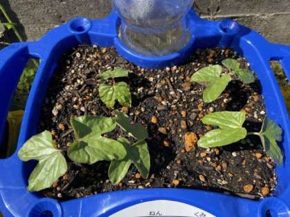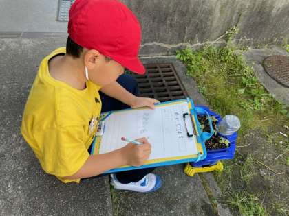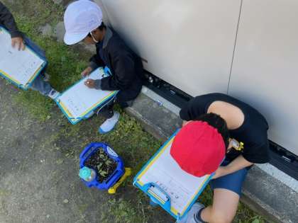 先週植えたアサガオがかわいい芽を出しました。子どもたちは大喜びです。