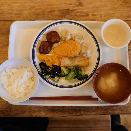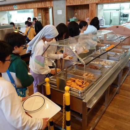 夕食はバイキング形式です。みんなとてもうれしそうに食べています。