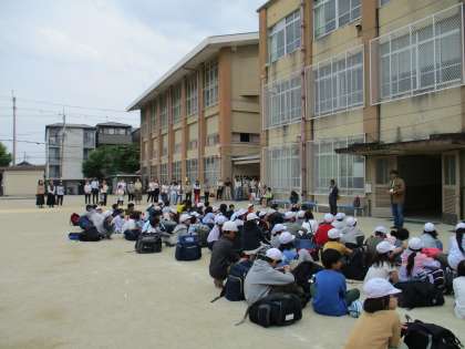 16:30に2泊3日の宿泊学習を終えた5年生が学校に帰ってきました。運動場で解散式を終えて、たくさんの思い出話を持って帰ってきました。