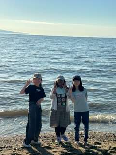 お宿の裏で浜遊びをしています。