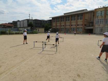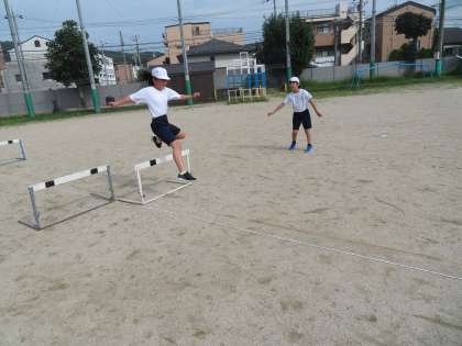 「トン、1、2、3」のリズムで跳べるよう、自分に合ったインターバルを確認しました。